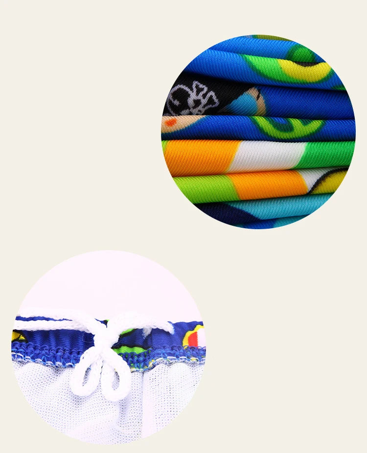 Mergulhe na diversão com este calção de banho infantil cheio de estilo! Confeccionado em poliéster de qualidade, apresenta estampas cartoon de dinossauro e tubarão que as crianças adoram. Com ajuste um pouco menor que o usual, oferece conforto e segurança na água. Disponível em tamanhos M a XXL, é perfeito para dias de praia, piscina ou brincadeiras ao ar livre. Material durável e fácil de cuidar, ideal para o verão das crianças.