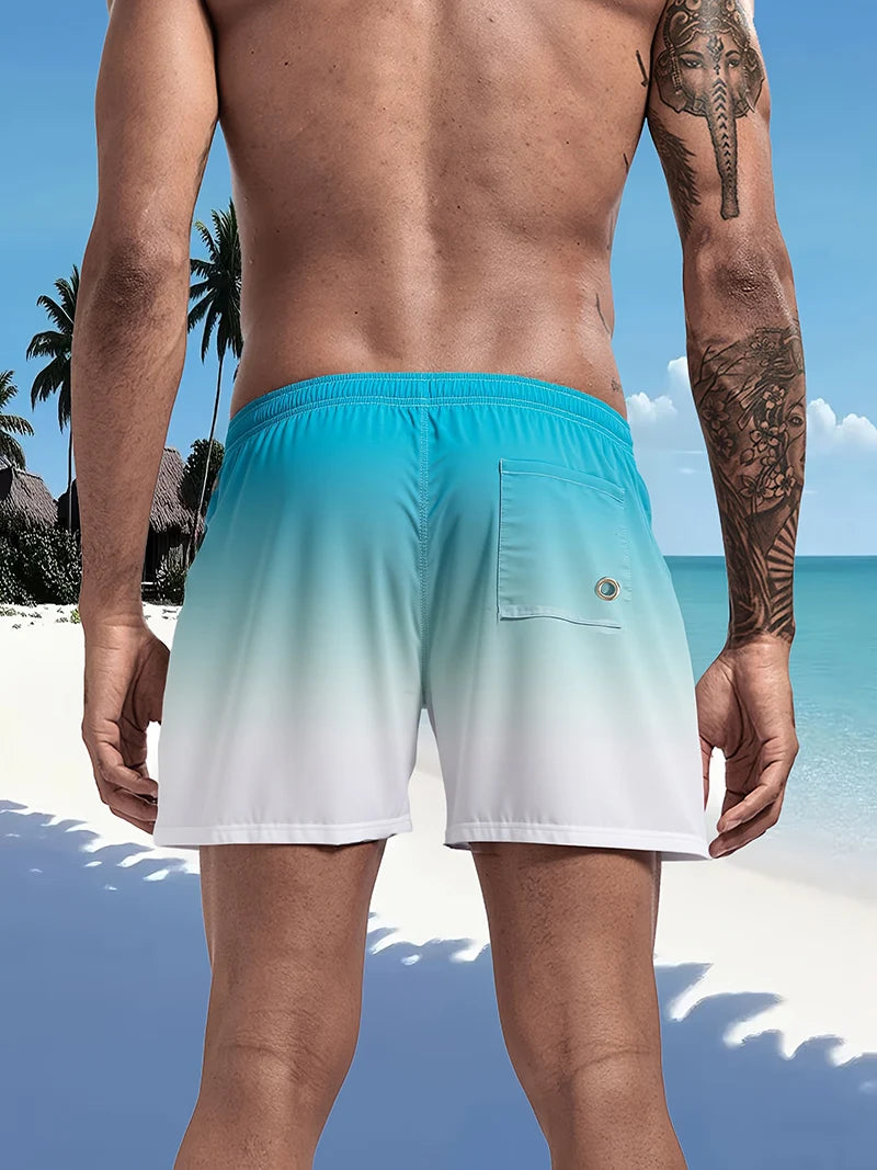 Calção de banho masculino com forro de tela, bolsos laterais, cor sólida, shorts de praia, secagem rápida, leve, com cordão, ideal para o verão.